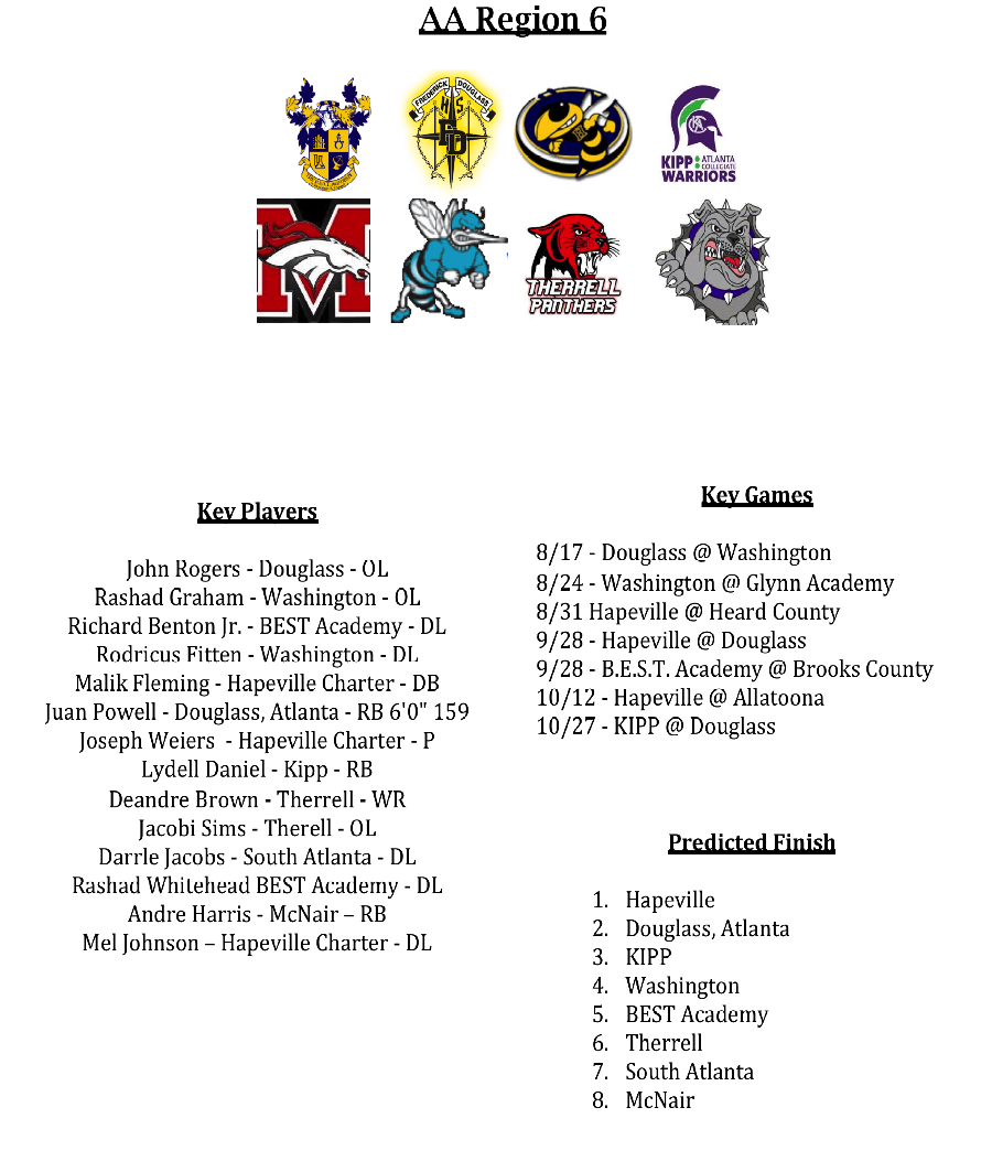 Graduation took a toll on Hapeville Charter, but we still expect the Hornets to be on top of the region. Douglass and KIPP Collegiate, shouldn’t be too far behind this season. Don’t be shocked if one of these two teams sneak up on the Hornets this season.