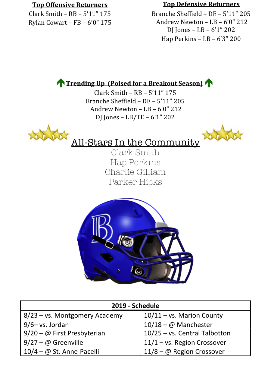 They should factor large again in the Cougars run oriented offense. (Last season, Brookstone averaged over 286 yards per game on the ground.)