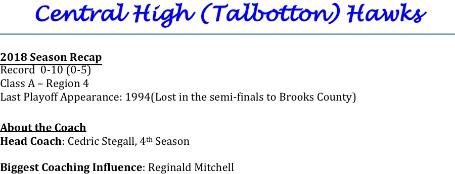 Coach Cedric Stegall begins his 4th season as head coach for the Central High Hawks. We asked Coach Stegall what his biggest challengewas coming into the 2019 season.