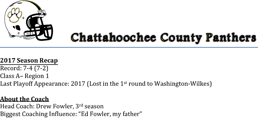 While the region games are extremely important, you can believe the Panthers are looking forward to their match-up with rival, Marion County on August 24th. It will be intriguing to see if Chattahoochee County can fill those voids and pick up where they left off last season.