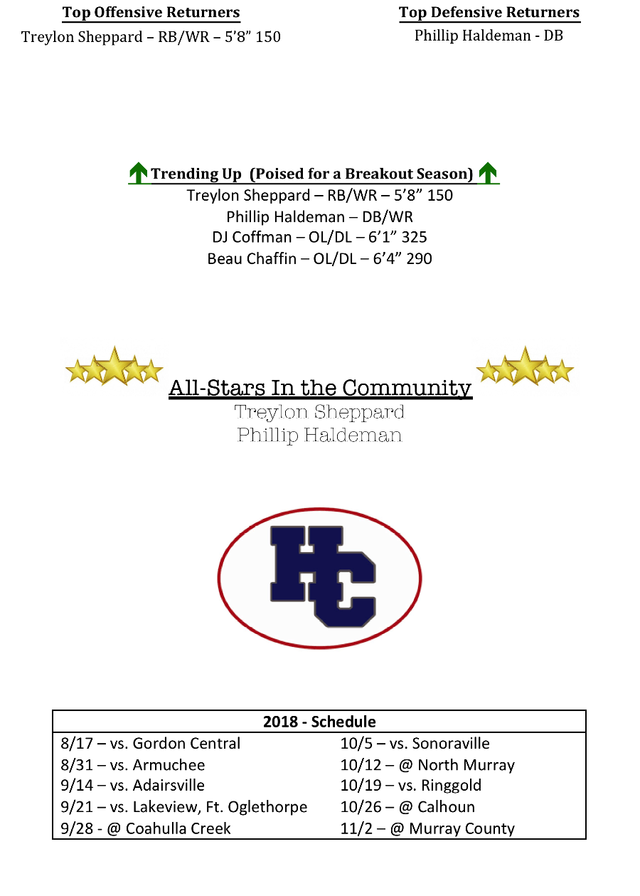 While Sheppard and Haldeman highlight the returning skill players. Both DJ Coffman and Beau Chaffin will anchor the offensive and defensive lines for the Rebels.