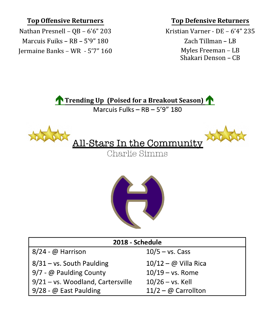 The Hoyas will be the first game of the season. The Hornets will travel to West Cobb on 8/24 to take on a Hoya program that has been one of the more consistent teams in Cobb County in recent years.