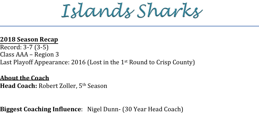 Robert Zoller begins his 5th season as the head coach for the Islands Sharks. Islands is coming into their 6th year of varsity football. We asked Coach Zoller what his team’s biggest challenge is entering the 2019 season.