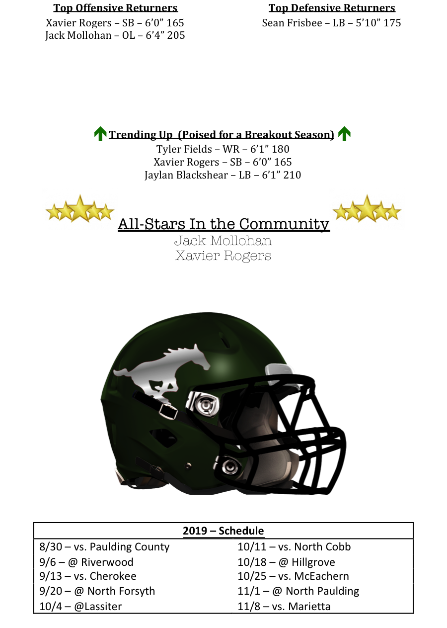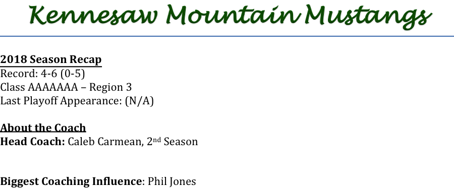 **Incase you missed it, you can check out our podcast interview with Coach Carmean Here: Kennesaw Mountain Mustangs Podcast