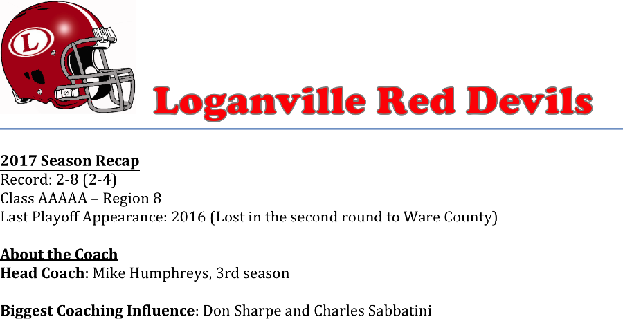 The Loganville Red Devils come into this season looking to rebound after a disappointing 2-8 finish last season. The Red Devils had qualified for the post season in both of Coach Humphrey’s prior seasons. We asked Coach Humphreys if there were any games on the schedule that stuck out more than others.