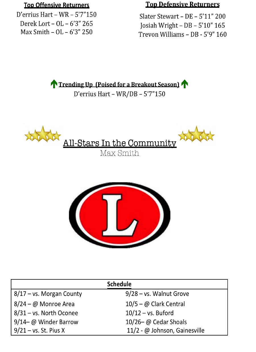Hart, who is listed as a wide receiver and defensive back also led Loganville in rushing last season. Wright and Max Ogletree also saw valuable minutes last season on offense as well at the receiver position. We wouldn’t be surprised if they are in the mix offensively this season.