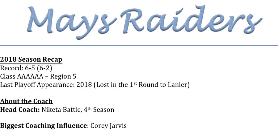 Coach Niketa Battle has lead the Mays Raiders to the playoffs on all 3 of his seasons at the helm. As the Raiders prepare for the 2019 season, we asked Coach Battle what the team’s biggest challenge is this year.