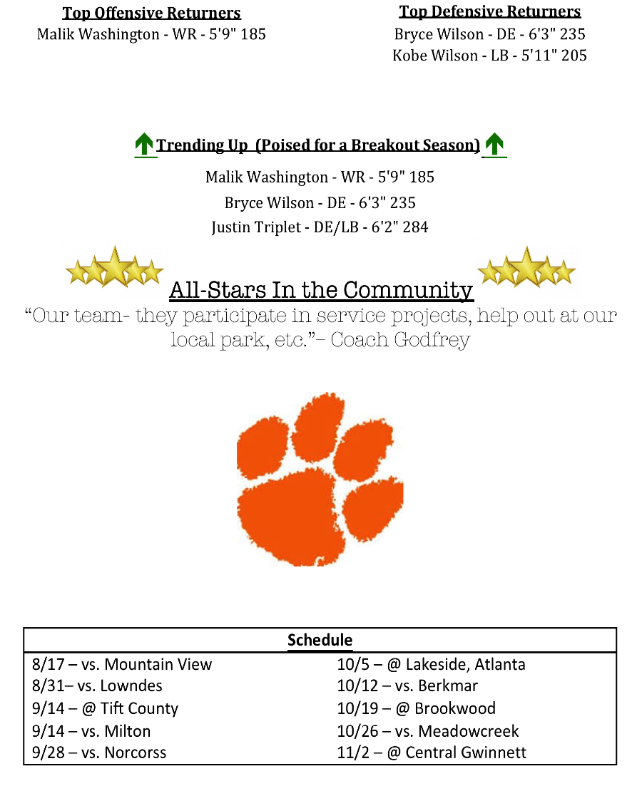 While the Panthers won’t be overlooking any of their opponents this season, you can believe that they will be eagerly anticipating their annual matchup against neighborhood rival Brookwood on October 19th in the Battle of Five-Forks.