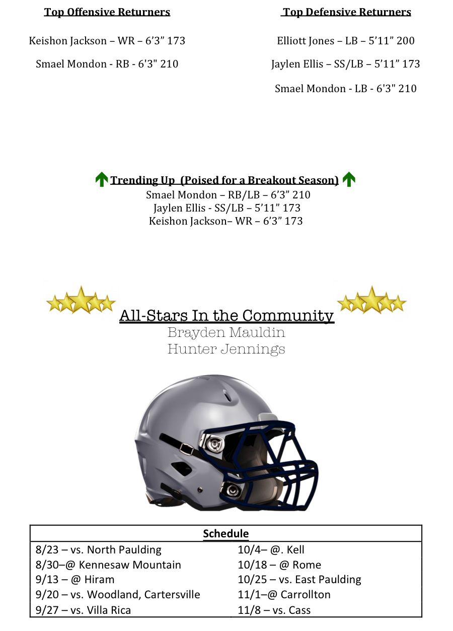 Perhaps one of the more difficult regions in Class AAAAA, it is home to teams like, Kell, Rome and Carrollton. And if you throw in Villa Rica, Hiram and East Paulding, there really are not many “holes” in the schedule.