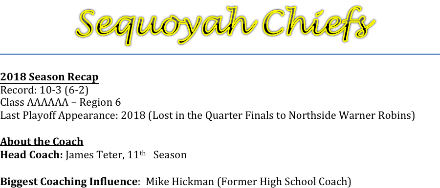 **Incase you missed it, you can check out our podcast interview with Coach Teter Here: Sequoyah Chiefs Podcast