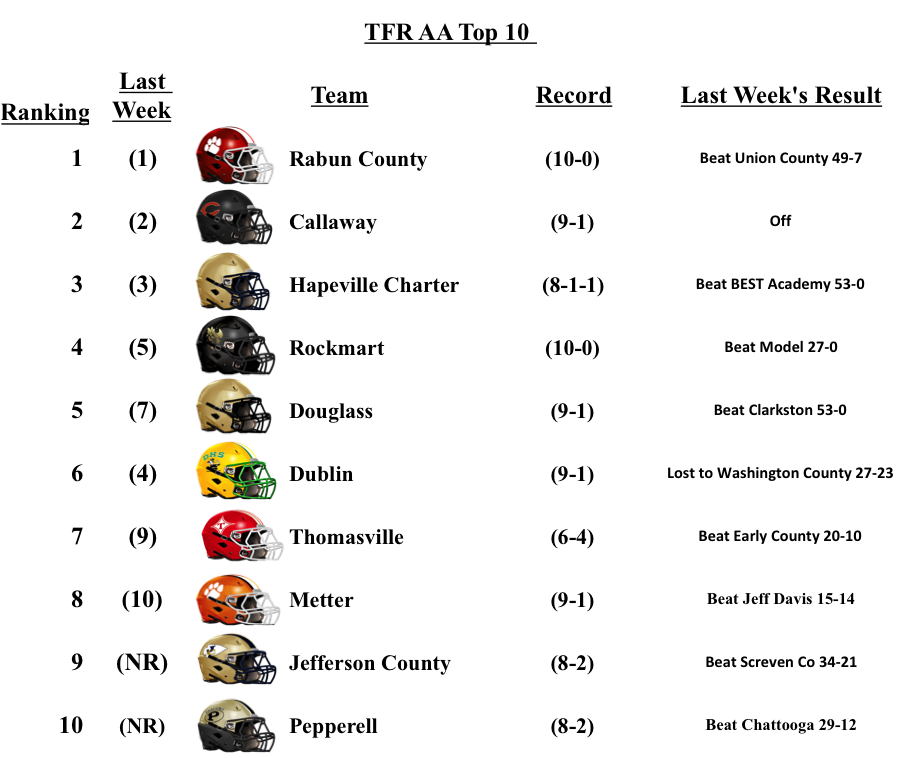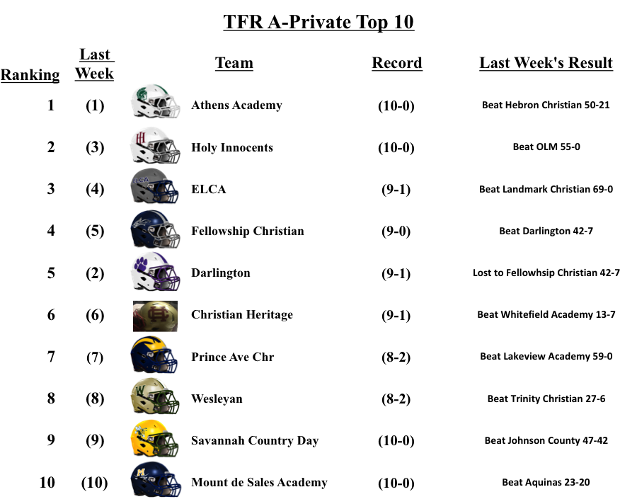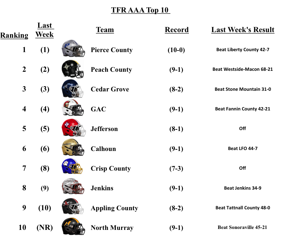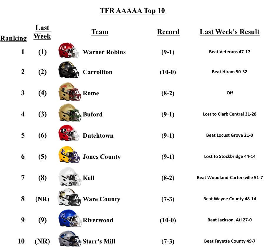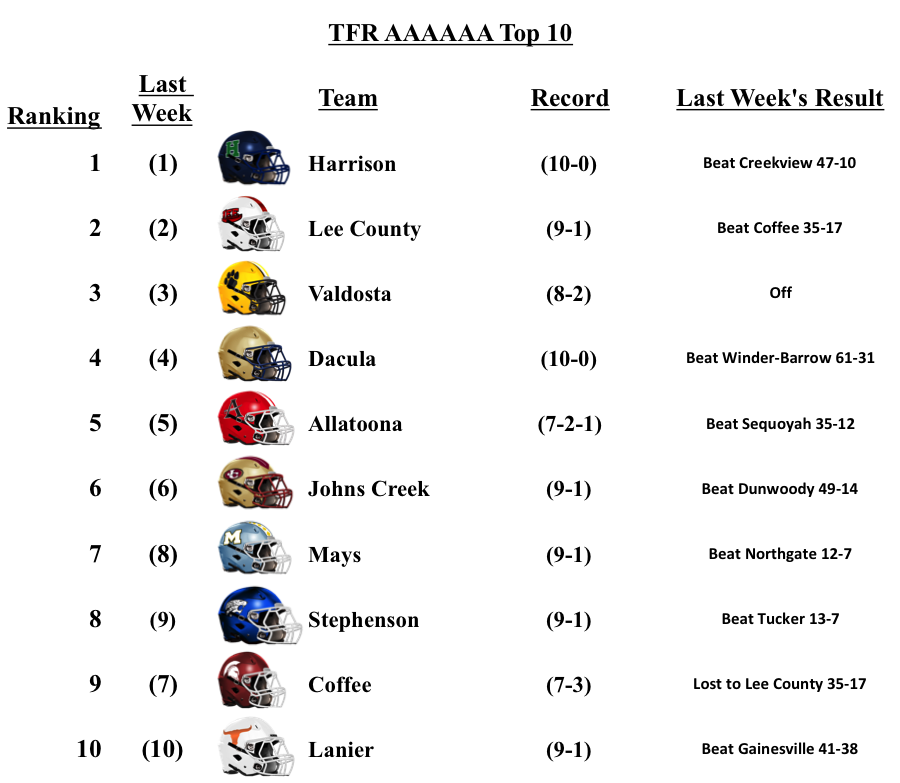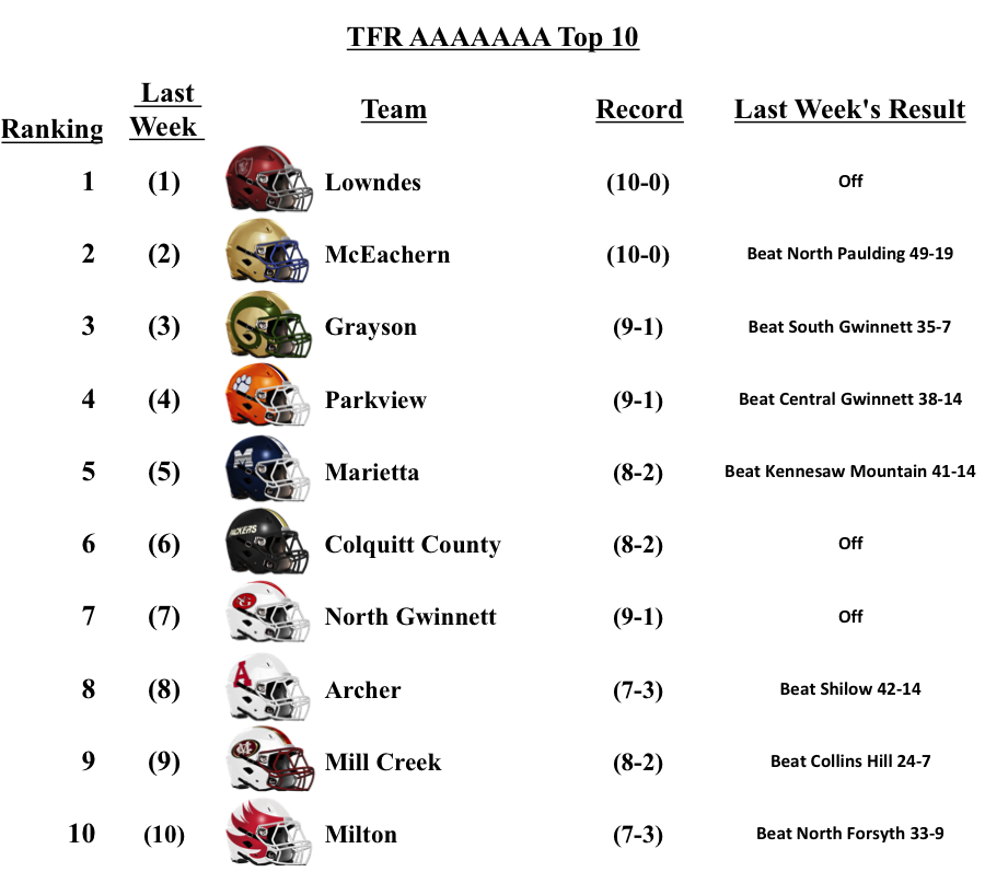 This is our final regular season GHSA Football Poll. We are feverishly working on playoff previews. We will update our Top-10 Poll after the playoffs have been completed. Thanks for reading!