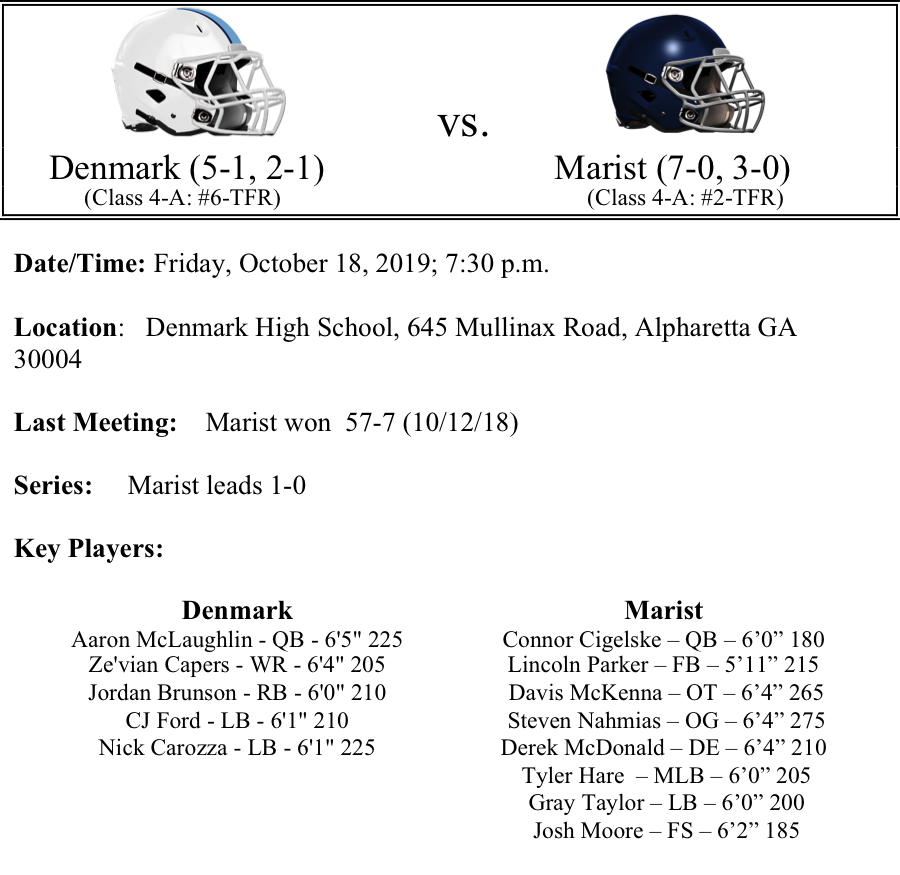 This is Part II of our GHSA Football Previews called Eight Greats Around The State. In Region-6 Class A, Christian Heritage will host the Bowdon Red Devils. Can Bowdon’s stingy defense keep the Christian Heritage offense in check? In Region-7 4A there are two big matchups between the top four teams. First, Blessed Trinity hosts Flowery Branch. The Titans got a big win last week but face a big test as Flowery Branch comes in undefeated. Can Blessed Trinity slow down the Flowery Branch ground game? The other matchup features Denmark and Marist. The Danes were edged by Blessed Trinity last week, but there’s no time to feel sorry for themselves as Marist comes into the game undefeated. The Ware Eagles are a perennial power and seem to be clicking on all cylinders. Will the Danes get revenge this year? Finally, we take a look at a big matchup in Region-5-4A as Cartersville hosts Sandy Creek. Both teams are ranked in the top 3 in most polls and each have been dominant on defense. Can Sandy Creek dethrone the reigning Region champions? As always, please feel free to share and comment.