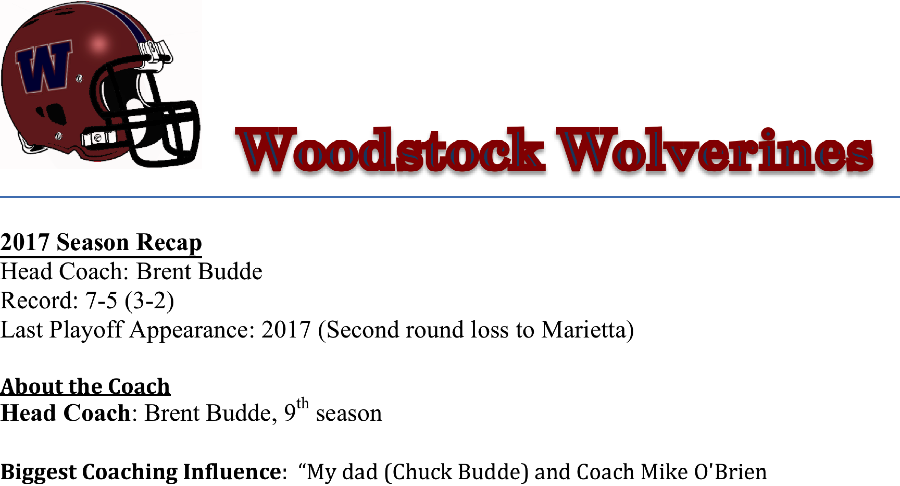 Coach Brent Budde enters his 9th season at the helm for the Woodstock Wolverines. Coach Budde has guided the Wolverines into the post season for the past two years. Budde’s Wolverines will have to replace several key pieces from last year’s team. Which featured not only the Region offensive player of the year (Noah Frith) but also the defensive player of the year, Latrell Bankston. We asked coach Budde what the biggest challenge would be this season.